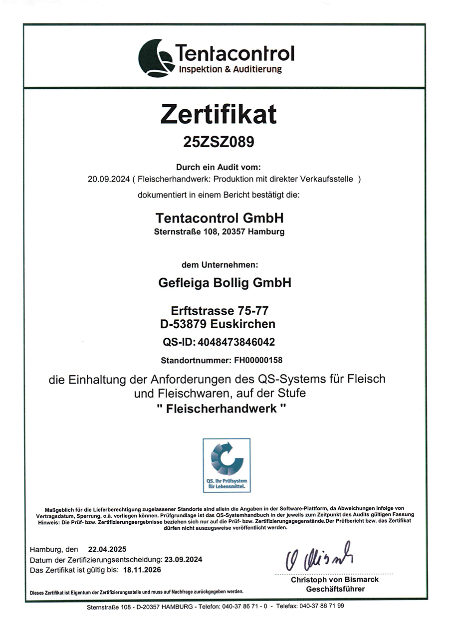 Die Gefleiga Bollig GmbH ein stolzer, inhabergeführter Familienbetrieb in zweiter Generation und seit über 50 Jahren Ihr Ansprechpartner in Euskirchen für Frischgeflügel, Fleischerei- und Gastronomiebedarf. Unsere langjährige Expertise macht uns zum kompetenten Partner für Großküchen und Gemeinschaftsverpflegung.